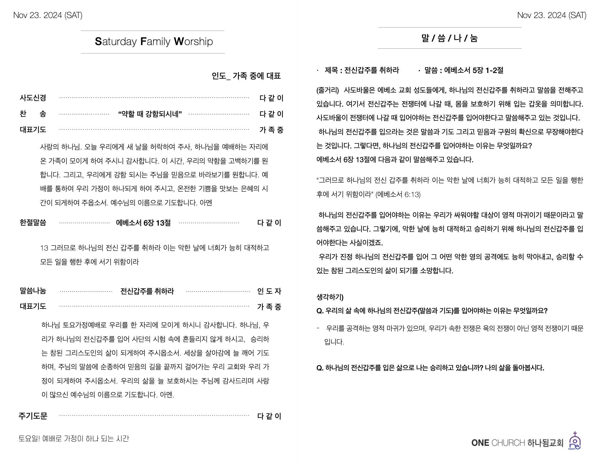 | 2024-11-30 가정예배 순서지 (0) | 2024.11.23 |