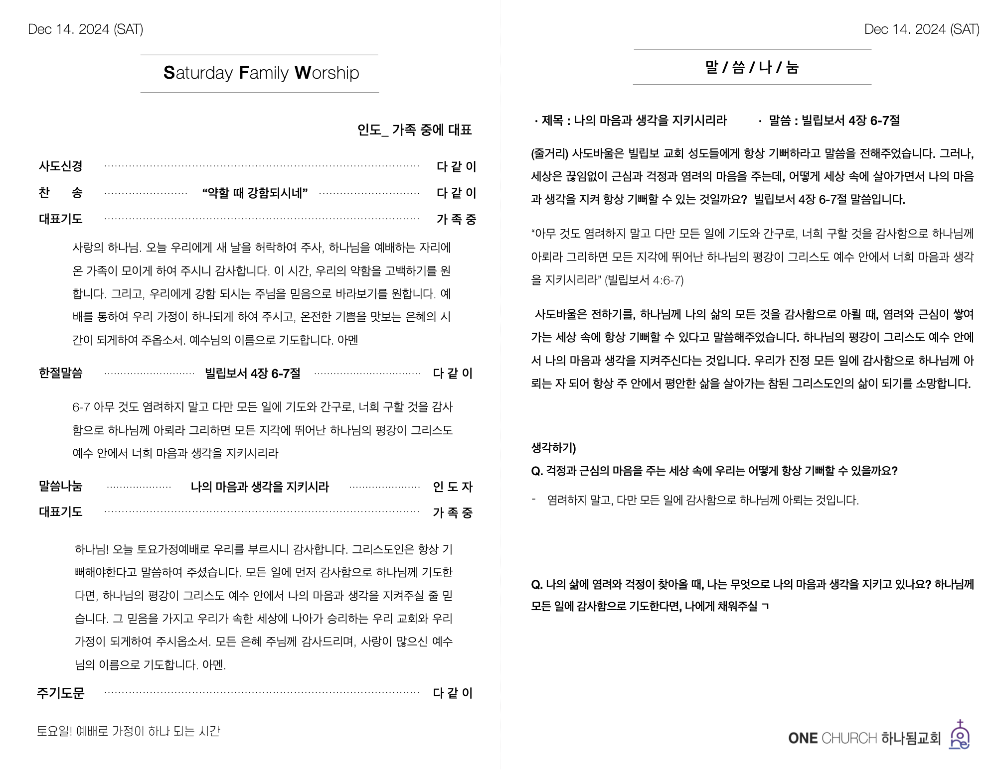 | 2024-12-07 가정예배 순서지 (0) | 2024.12.02 |