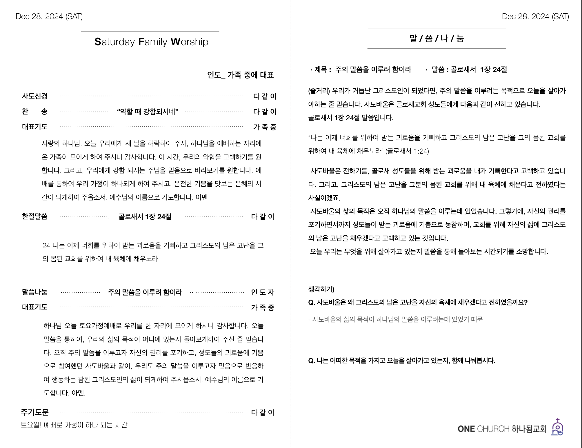 | 2025-01-04 가정예배 순서지 (0) | 2024.12.29 |