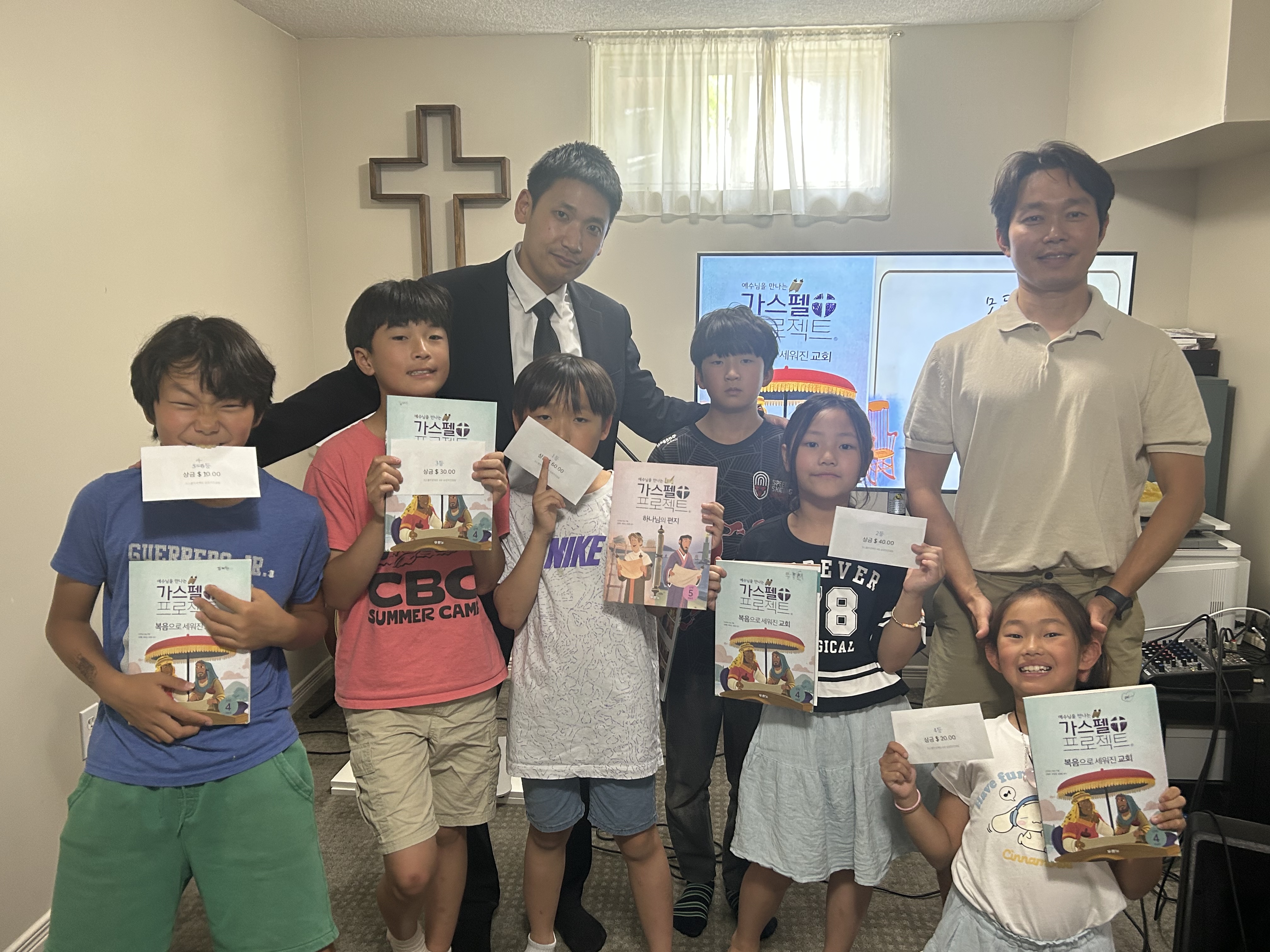 "주일학교 가스펠프로젝트 신약 (4) 성경퀴즈대회" 2025년도 전반기 매주일마다 주일학교 예배를 드리며 하나님의 말씀을 배우는 시간을 가졌습니다. 그리고배웠던 하나님의 말씀을 다시금 마음에 새기고자성경퀴즈대회를 진행하였습니다. 참 감사한 것은 11주 동안 배웠던 하나님의 말씀이 그냥 흘러간 것이 아니라아이들의 머릿 속에 기억되어 너무나도 풍성한 성경퀴즈대회가 될 수 있었습니다. 어린시절 성경을 아는 일은 너무나 중요한 줄 믿습니다.하나됨교회가 진정 다음세대 아이들을 말씀으로 세우는 사명을 감당하기를 기도합니다. 지혜주시고 새힘 주실 주님을 기대합니다! 성경퀴즈대회 공부하느라 모두 수고 많았어요 :)하나됨교회 주일학교 화이팅!